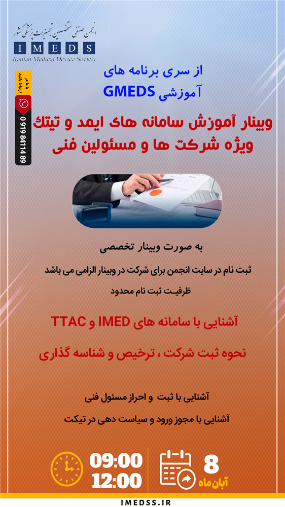 تمامی حقوق معنوی این سایت متعلق به انجمن متخصصین تجهیزات پزشکی کشور می باشد. استفاده از عکسهای این سایت بنا به کسب اجازه کتبی از انجمن متخصصین تجهیزات پزشکی کشور می باشد در غیر این صورت پیگرد قانونی دارد.